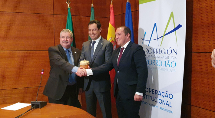 O presidente da Comissão de Coordenação e Desenvolvimento da Região do Algarve (CCDR Algarve), Francisco Serra, passou esta quinta-feira, dia 16 de janeiro em Faro, o testemunho da liderança rotativa da Eurorregião Alentejo-Algarve-Andaluzia (EuroAAA) para o Presidente da Junta de Andaluzia, Juan Moreno, numa sessão que contou com a participação de Isabel Ferreira, Secretária de Estado da Valorização do Interior.