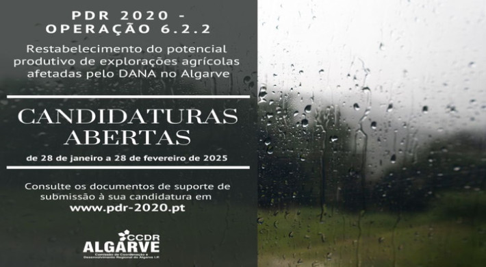 Até ao próximo dia 28 de fevereiro está aberto o aviso para a submissão de candidaturas ao PDR2020 para apoios ao restabelecimento do potencial produtivo de explorações agrícolas, danificado no seguimento dos fenómenos meteorológicos Kirk e DANA (Depressão Atmosférica em Níveis Altos), bem como da doença Língua Azul, reconhecida como catástrofe natural [Despacho n.º 1219/2025, de 27 de janeiro].