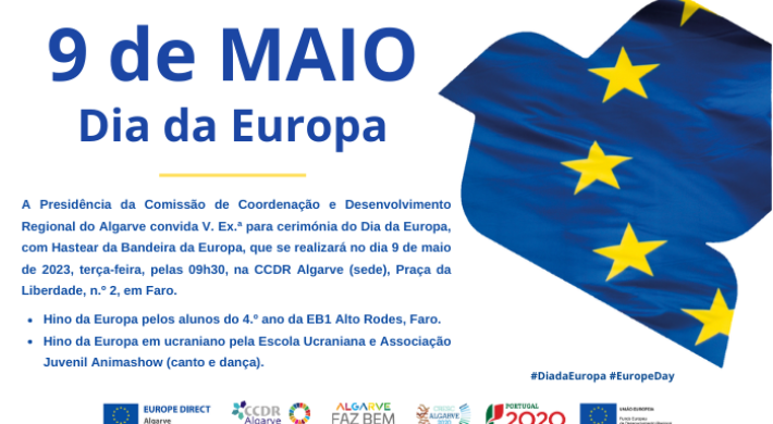 As comemorações deste ano terão início em Faro (frente à CCDR Algarve) pelas 09h30 com o hastear da Bandeira ao som do Hino da Europa interpretado por alunos do 4.º ano da Escola Básica do 1.º Ciclo de Alto Rodes. Segue-se a atuação da Escola Ucraniana e Associação Juvenil Animashow, que vão entoar e coreografar o Hino da Europa em Ucraniano.