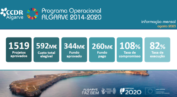 Até 31 de agosto, no total, os pagamentos efetuados no âmbito do Programa Operacional do Algarve - CRESC ALGARVE 2020 ascenderam a 260 milhões de euros, financiando investimentos no montante de 592 milhões de euros (custo total elegível), relativos a 1.519 candidaturas aprovadas.