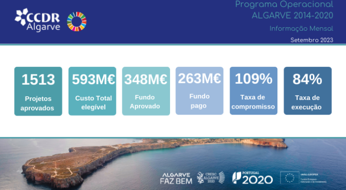 Até 30 de setembro, no total, os pagamentos efetuados no âmbito do Programa Operacional do Algarve - CRESC ALGARVE 2020 ascenderam a 263 milhões de euros, financiando investimentos no montante de 593 milhões de euros (custo total elegível), relativos a 1.513 candidaturas aprovadas.