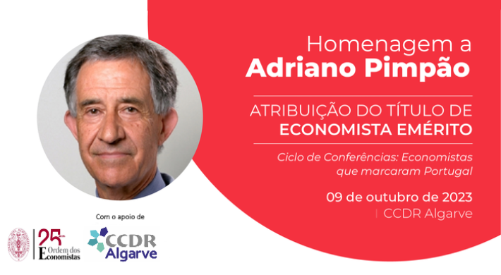 A Ordem dos Economistas, através da sua Delegação Regional e com o apoio da Comissão de Coordenação e Desenvolvimento Regional (CCDR) do Algarve I. P., organiza no dia 9 de outubro uma Sessão de Homenagem ao Professor Adriano Pimpão, que vai receber o título de Economista Emérito em face do seu percurso de destaque na área universitária e de investigação, assim como pela sua intervenção cívica e política ao serviço de Portugal.