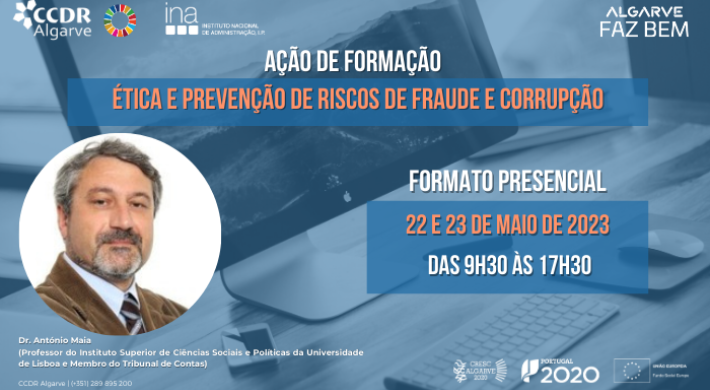 A Comissão de Coordenação e Desenvolvimento Regional (CCDR) do Algarve promoverá, em parceria com o INA – Instituto Nacional de Administração I.P., nos dias 22 e 23 de maio, uma ação de formação presencial, em matéria de Ética e Cultura de Integridade na Gestão Pública e Prevenção de Riscos de Fraude e Corrupção.
