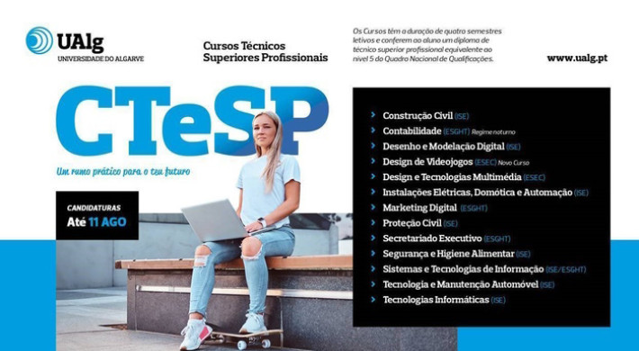 A oferta formativa da UAlg prevê 13 CTeSP e a inscrição no Webinar é obrigatória e pode ser realizada AQUI.
