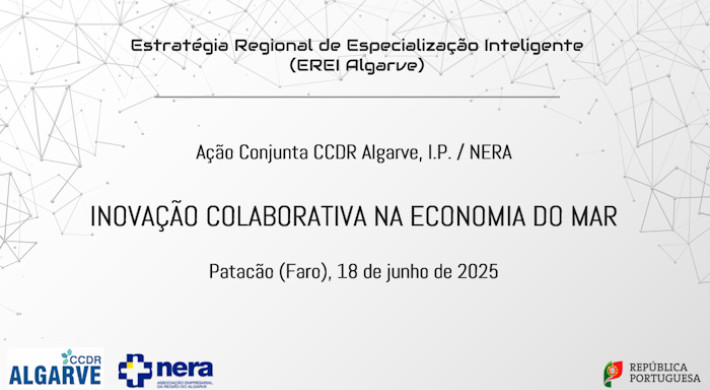 Dando seguimento à dinamização da Estratégia de Especialização Inteligente do Algarve para o período 2030, irá decorrer uma ação dedicada à inovação no domínio da Economia do Mar, no próxima dia 18 de junho de 2025 (quarta-feira), pelas 9h30, no Auditório da CCDR ALGARVE – Agricultura e Pescas (Patacão – Faro), promovida pela Comissão de Coordenação e Desenvolvimento Regional (CCDR) do Algarve, I. P. em parceria com a Associação Empresarial da Região do Algarve (NERA).