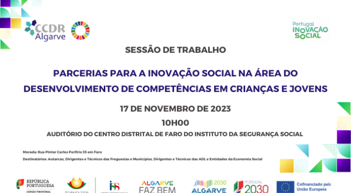 Na sequência da publicação pelo Programa Regional Algarve 2030 do aviso de concurso para Parcerias para a Inovação Social na área do desenvolvimento de competências em crianças e jovens (ALGARVE 2023-2024), a Estrutura de Missão Portugal Inovação Social (EMPIS), o Centro Distrital de Faro do Instituto de Segurança Social, I. P. e a Autoridade de Gestão promovem uma sessão de divulgação e informação dedicadas aos técnicos das Instituições Particulares de Solidariedade de Social (IPSS) e dos Municípios, nesta sexta-feira, dia 17 de novembro, em Faro.